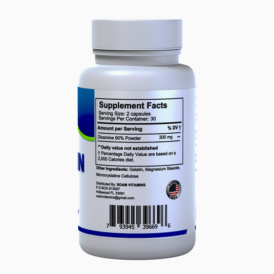 Pure Diosmin 300 mg - Varicose Veins Treatment for Legs - Blood Circulation Supplement - Non-GMO - Gluten Free - SOAM