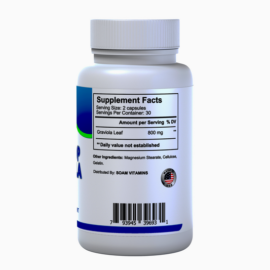Graviola Leaf 800 mg - Soursop Leaves Extract - Multivitamin - Support Immune Boost - Support Digestive System - Healthy Cell Function - Gluten Free - 60 capsules - SOAM VITAMINS