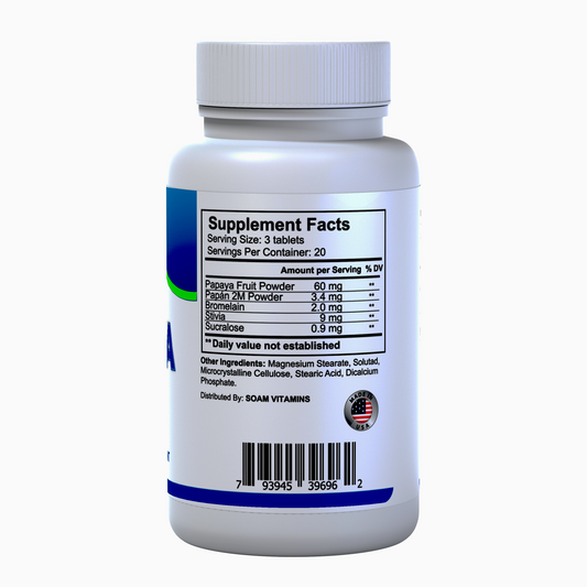 Papaya - Digestive Enzymes - Support Immune Gut & Super Digestive - Bloating, Gas & Constipation - 60 Tablets - SOAM VITAMINS